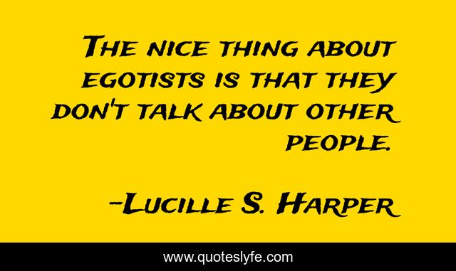 This page presents the quote "The nice thing about egotists is that they don't talk about other people.". Author of this quote is Lucille S. Harper. This quote is about self, confidence,.