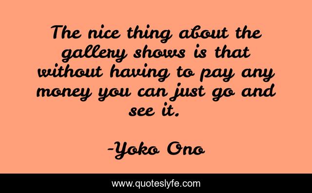 This page presents the quote "The nice thing about the gallery shows is that without having to pay any money you can just go and see it.". Author of this quote is Yoko Ono. This quote is about see, nice,.