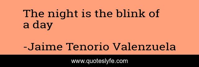 This page presents the quote "The night is the blink of a day". Author of this quote is Jaime Tenorio Valenzuela. This quote is about blink, day, night,.