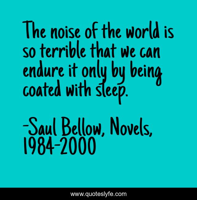 This page presents the quote "The noise of the world is so terrible that we can endure it only by being coated with sleep.". Author of this quote is Saul Bellow, Novels, 1984-2000. This quote is about noise, sleep,.