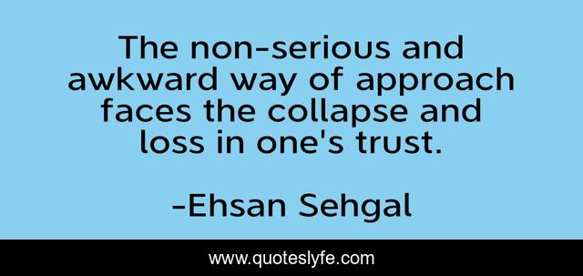 This page presents the quote "The non-serious and awkward way of approach faces the collapse and loss in one's trust.". Author of this quote is Ehsan Sehgal. .