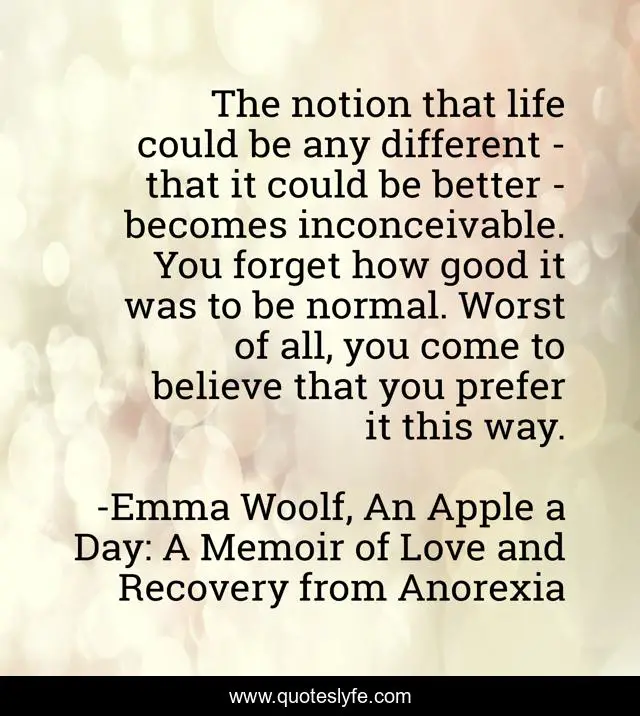 "Emma Woolf, An Apple a Day: A Memoir of Love and Recovery from Anorexia Quotes." Quoteslyfe.com, 2025. Fri. 05 Dec. 2025. <https://www.quoteslyfe.com/quote/The-notion-that-life-could-be-any-237836>.