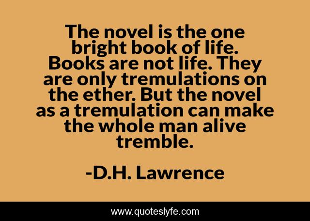 This page presents the quote "The novel is the one bright book of life. Books are not life. They are only tremulations on the ether. But the novel as a tremulation can make the whole man alive tremble.". Author of this quote is D.H. Lawrence. .