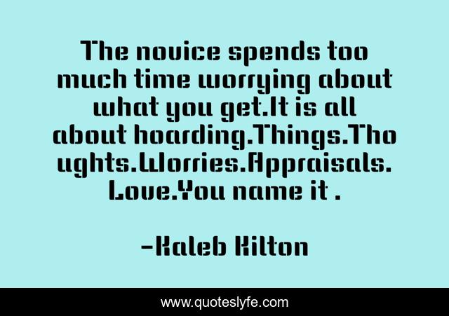 This page presents the quote "The novice spends too much time worrying about what you get.It is all about hoarding.Things.Thoughts.Worries.Appraisals.Love.You name it .". Author of this quote is Kaleb Kilton. This quote is about love, things, thoughts, worry, appraisal, affection,.