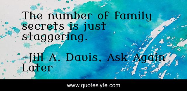 This page presents the quote "The number of family secrets is just staggering.". Author of this quote is Jill A. Davis, Ask Again Later. This quote is about secrets, family,.