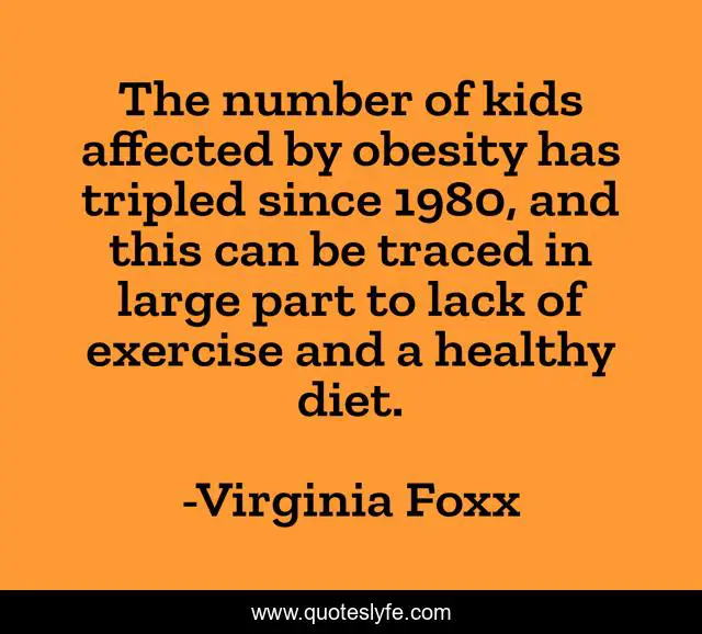 This page presents the quote "The number of kids affected by obesity has tripled since 1980, and this can be traced in large part to lack of exercise and a healthy diet.". Author of this quote is Virginia Foxx. This quote is about healthy, kids, exercise,.