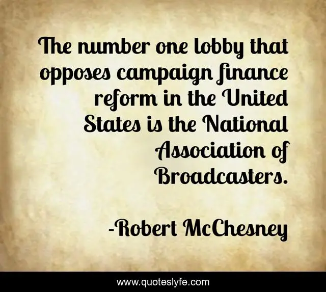 "Robert McChesney Quotes." Quoteslyfe.com, 2025. Sun. 07 Dec. 2025. <https://www.quoteslyfe.com/quote/The-number-one-lobby-that-opposes-campaign-309392>.