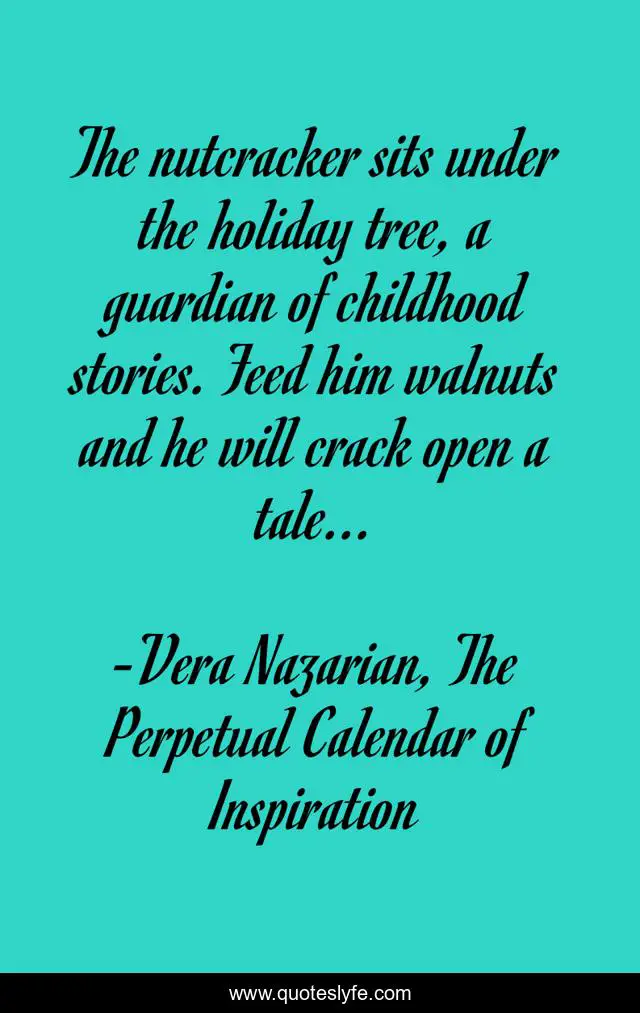 "Vera Nazarian, The Perpetual Calendar of Inspiration Quotes." Quoteslyfe.com, 2025. Fri. 05 Dec. 2025. <https://www.quoteslyfe.com/quote/The-nutcracker-sits-under-the-holiday-tree-180521>.