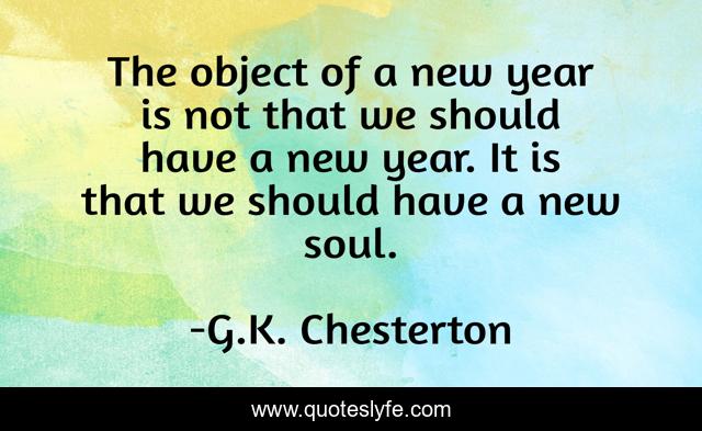 This page presents the quote "The object of a new year is not that we should have a new year. It is that we should have a new soul.". Author of this quote is G.K. Chesterton. This quote is about new-year, soul,.