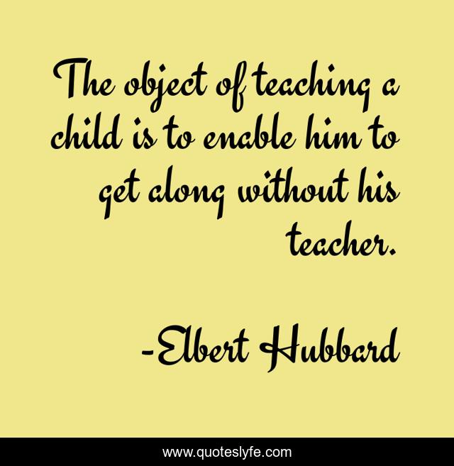 This page presents the quote "The object of teaching a child is to enable him to get along without his teacher.". Author of this quote is Elbert Hubbard. This quote is about without, him, child,.