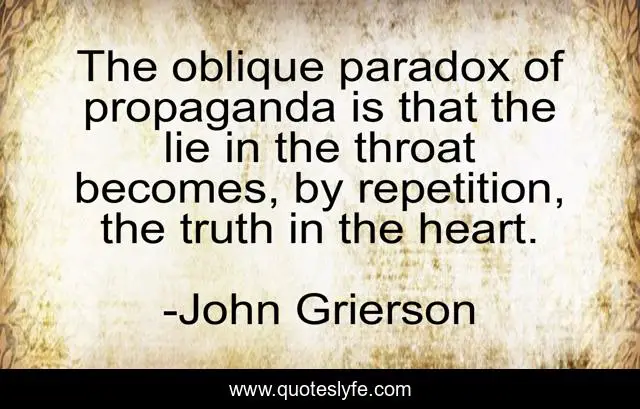 "John Grierson Quotes." Quoteslyfe.com, 2025. Sat. 06 Dec. 2025. <https://www.quoteslyfe.com/quote/The-oblique-paradox-of-propaganda-is-that-310116>.