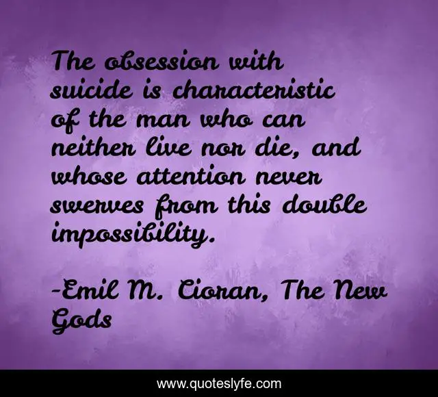 "Emil M. Cioran, The New Gods Quotes." Quoteslyfe.com, 2025. Fri. 05 Dec. 2025. <https://www.quoteslyfe.com/quote/The-obsession-with-suicide-is-characteristic-of-144659>.