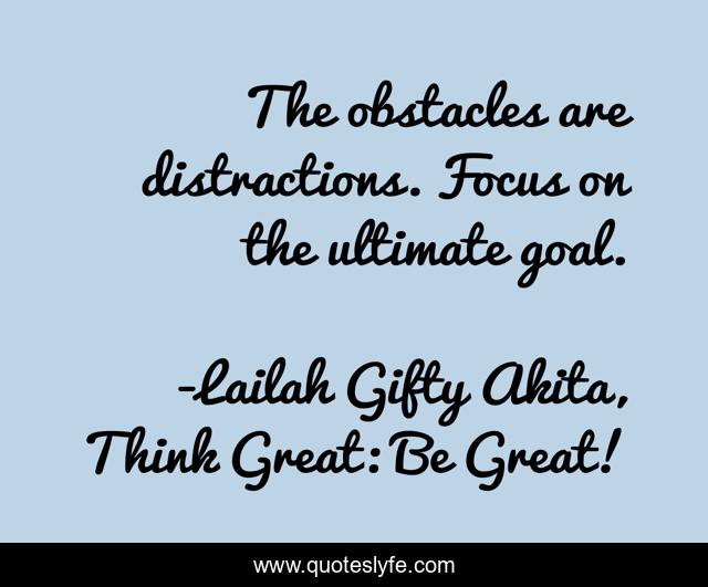"Lailah Gifty Akita, Think Great: Be Great! Quotes." Quoteslyfe.com, 2025. Mon. 08 Dec. 2025. <https://www.quoteslyfe.com/quote/The-obstacles-are-distractions-Focus-on-the-34534>.