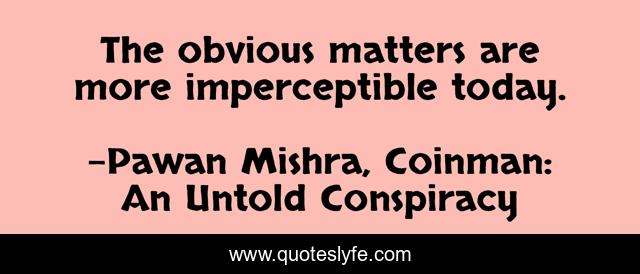 "Pawan Mishra, Coinman: An Untold Conspiracy Quotes." Quoteslyfe.com, 2025. Sat. 06 Dec. 2025. <https://www.quoteslyfe.com/quote/The-obvious-matters-are-more-imperceptible-today-149484>.