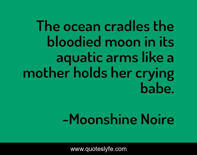 This page presents the quote "The ocean cradles the bloodied moon in its aquatic arms like a mother holds her crying babe.". Author of this quote is Moonshine Noire. This quote is about spirituality, life, moon, poetry, ocean,.
