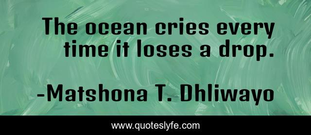 This page presents the quote "The ocean cries every time it loses a drop.". Author of this quote is Matshona T. Dhliwayo. .