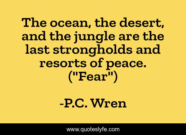 This page presents the quote "The ocean, the desert, and the jungle are the last strongholds and resorts of peace. ("Fear")". Author of this quote is P.C. Wren. This quote is about peace, silence,.