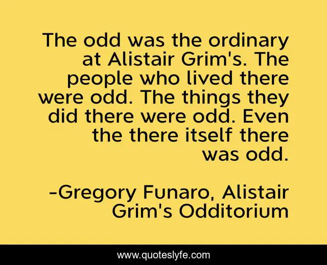 "Gregory Funaro, Alistair Grim's Odditorium Quotes." Quoteslyfe.com, 2025. Tue. 09 Dec. 2025. <https://www.quoteslyfe.com/quote/The-odd-was-the-ordinary-at-Alistair-82566>.