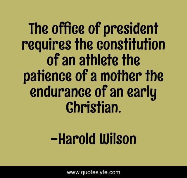 This page presents the quote "The office of president requires the constitution of an athlete the patience of a mother the endurance of an early Christian.". Author of this quote is Harold Wilson. .