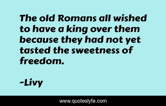 This page presents the quote "The old Romans all wished to have a king over them because they had not yet tasted the sweetness of freedom.". Author of this quote is Livy. This quote is about king, old, sweetness,.