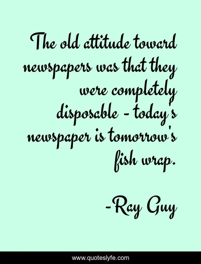 This page presents the quote "The old attitude toward newspapers was that they were completely disposable - today's newspaper is tomorrow's fish wrap.". Author of this quote is Ray Guy. This quote is about fish, tomorrow, today,.
