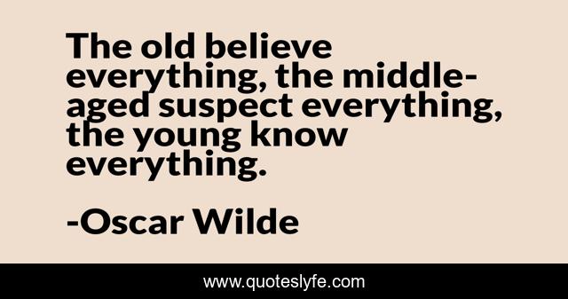This page presents the quote "The old believe everything, the middle-aged suspect everything, the young know everything.". Author of this quote is Oscar Wilde. This quote is about believe, young,.