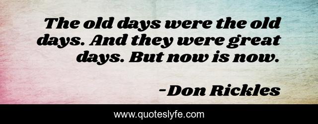 This page presents the quote "The old days were the old days. And they were great days. But now is now.". Author of this quote is Don Rickles. This quote is about old days, now, old,.