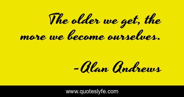 This page presents the quote "The older we get, the more we become ourselves.". Author of this quote is Alan Andrews. This quote is about life-and-living, humor, philosophical-musings,.