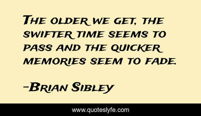 This page presents the quote "The older we get, the swifter time seems to pass and the quicker memories seem to fade.". Author of this quote is Brian Sibley. This quote is about memories, seems, older,.