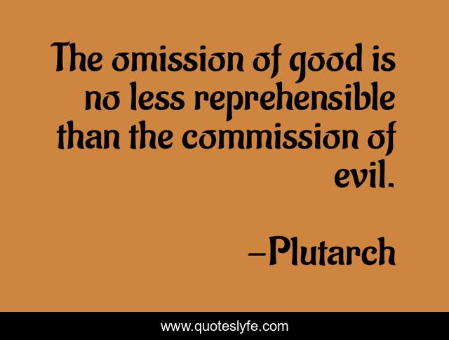 This page presents the quote "The omission of good is no less reprehensible than the commission of evil.". Author of this quote is Plutarch. This quote is about omission, evil,.