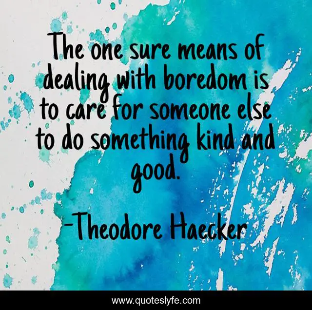 This page presents the quote "The one sure means of dealing with boredom is to care for someone else to do something kind and good.". Author of this quote is Theodore Haecker. This quote is about boring, days,.