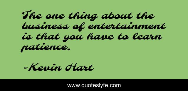 This page presents the quote "The one thing about the business of entertainment is that you have to learn patience.". Author of this quote is Kevin Hart. This quote is about business, entertainment,.