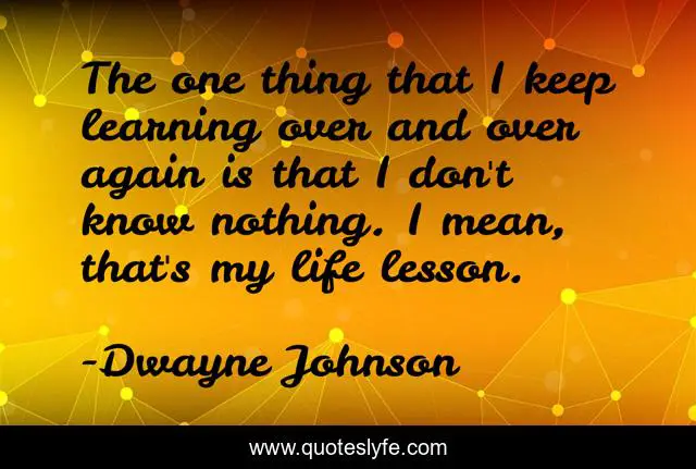 This page presents the quote "The one thing that I keep learning over and over again is that I don't know nothing. I mean, that's my life lesson.". Author of this quote is Dwayne Johnson. This quote is about life, my life,.