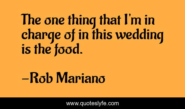 This page presents the quote "The one thing that I'm in charge of in this wedding is the food.". Author of this quote is Rob Mariano. This quote is about food, one thing, charge,.
