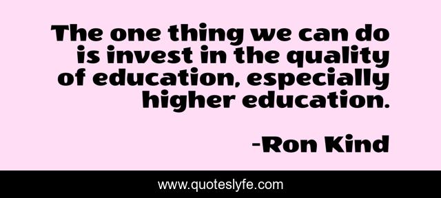 This page presents the quote "The one thing we can do is invest in the quality of education, especially higher education.". Author of this quote is Ron Kind. This quote is about higher education, quality,.