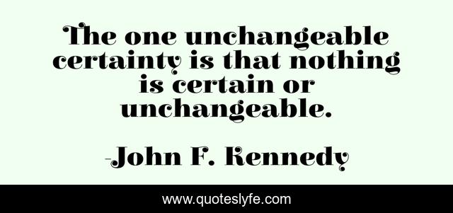 "John F. Kennedy Quotes." Quoteslyfe.com, 2025. Fri. 05 Dec. 2025. <https://www.quoteslyfe.com/quote/The-one-unchangeable-certainty-is-that-nothing-261326>.