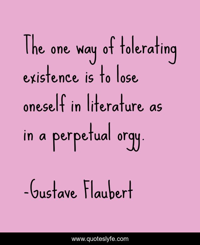 This page presents the quote "The one way of tolerating existence is to lose oneself in literature as in a perpetual orgy.". Author of this quote is Gustave Flaubert. This quote is about bibliophile, books, reading, literature,.