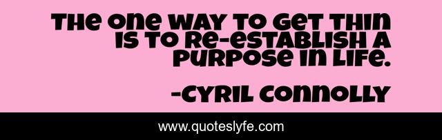 This page presents the quote "The one way to get thin is to re-establish a purpose in life.". Author of this quote is Cyril Connolly. .