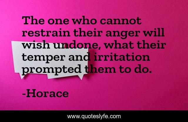 This page presents the quote "The one who cannot restrain their anger will wish undone, what their temper and irritation prompted them to do.". Author of this quote is Horace. This quote is about wish, temper,.