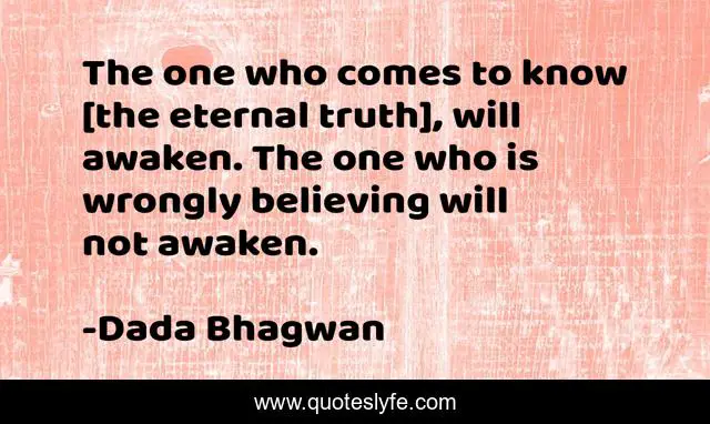 This page presents the quote "The one who comes to know [the eternal truth], will awaken. The one who is wrongly believing will not awaken.". Author of this quote is Dada Bhagwan. This quote is about spiritual, awaken, believing, wrongly,.