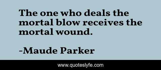 This page presents the quote "The one who deals the mortal blow receives the mortal wound.". Author of this quote is Maude Parker. .