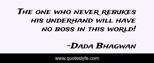 This page presents the quote "The one who never rebukes his underhand will have no boss in this world!". Author of this quote is Dada Bhagwan. This quote is about world, spiritual,.