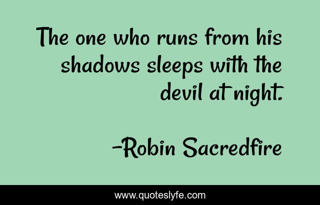 This page presents the quote "The one who runs from his shadows sleeps with the devil at night.". Author of this quote is Robin Sacredfire. This quote is about devil, satan, evil,.