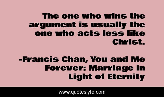 This page presents the quote "The one who wins the argument is usually the one who acts less like Christ.". Author of this quote is Francis Chan, You and Me Forever: Marriage in Light of Eternity. .