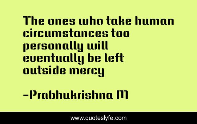 This page presents the quote "The ones who take human circumstances too personally will eventually be left outside mercy". Author of this quote is Prabhukrishna M. This quote is about mercy, eventuality, humanity,.