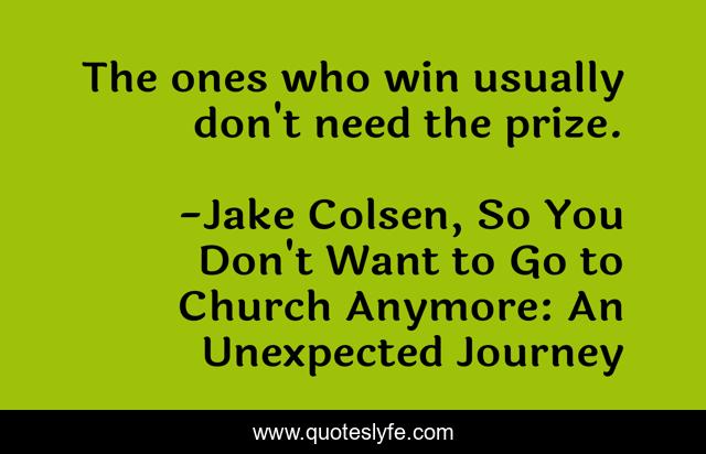 This page presents the quote "The ones who win usually don't need the prize.". Author of this quote is Jake Colsen, So You Don't Want to Go to Church Anymore: An Unexpected Journey. This quote is about prize, winning,.
