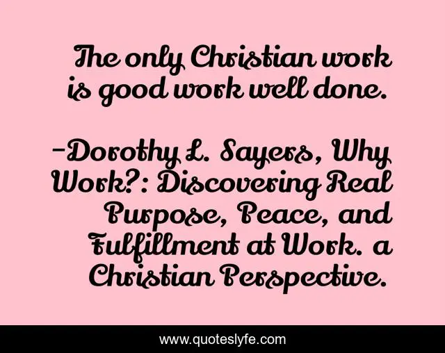 "Dorothy L. Sayers, Why Work?: Discovering Real Purpose, Peace, and Fulfillment at Work. a Christian Perspective. Quotes." Quoteslyfe.com, 2025. Sat. 06 Dec. 2025. <https://www.quoteslyfe.com/quote/The-only-Christian-work-is-good-work-142161>.
