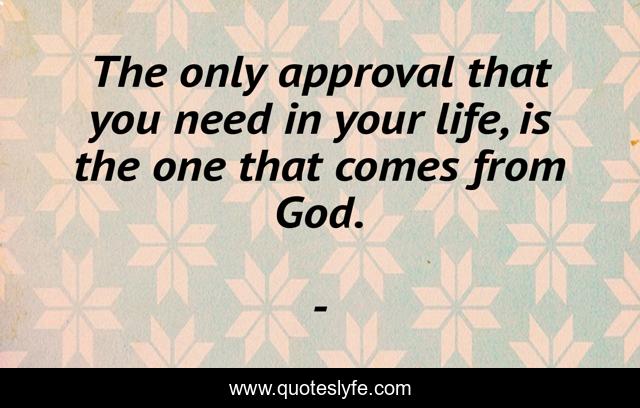 This page presents the quote "The only approval that you need in your life, is the one that comes from God.". Author of this quote is . This quote is about edmond-mbiaka, approval-from-god, life, seeking-for-approval,.
