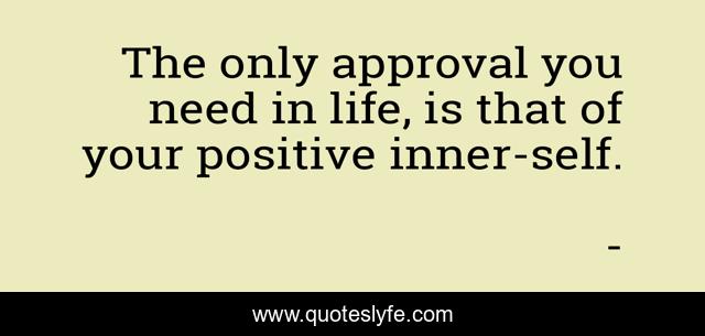 This page presents the quote "The only approval you need in life, is that of your positive inner-self.". Author of this quote is . This quote is about edmond-mbiaka, approval, life, your-inner-self, positive-inner-self,.