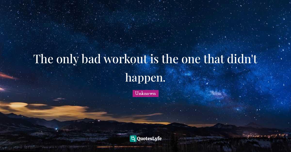 This page presents the quote "The only bad workout is the one that didn't happen.". Author of this quote is Unknown. This quote is about workout, gym,.